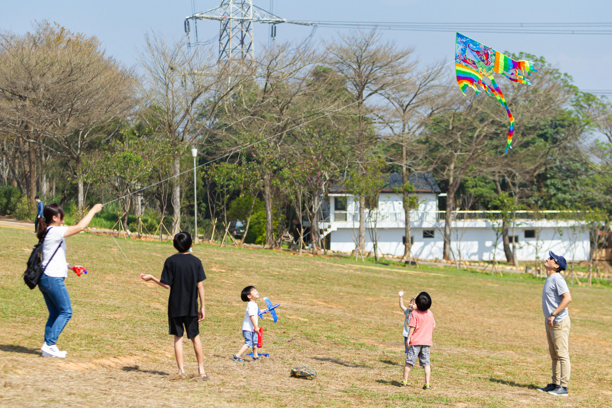 一起仰望著飛舞的風箏追逐與歡笑、一起體驗戶外穿越障礙的操控學習、